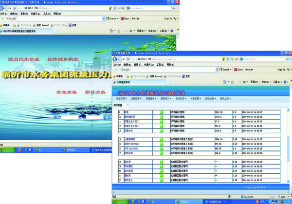 三、系統(tǒng)功能 v 實(shí)時(shí)采集管道壓力、流量數(shù)據(jù)數(shù)據(jù)接收中心服務(wù)器; v 能顯示整個(gè)管網(wǎng)系統(tǒng)的供水管線圖及地理分布圖(及用戶用水信息); v 集中顯示各監(jiān)測(cè)點(diǎn)重要參數(shù)(如瞬時(shí)流量、累計(jì)流量、壓力、電池電壓、報(bào)警狀態(tài)、通訊狀態(tài); v 各用水單位的界面和報(bào)表功能,可隨時(shí)增加或刪除,操作方便快捷; v 按區(qū)域、地塊劃分用戶,注明長期用戶和季節(jié)性用戶,能單獨(dú)顯示各用戶子站的全部測(cè)量參數(shù)及設(shè)置參數(shù); v 能自動(dòng)生成各用戶的瞬時(shí)流量、累計(jì)流量、壓力的并行歷史曲線,并可查詢?nèi)我庥脩?、任意參?shù)、任意時(shí)段的歷史數(shù) 據(jù),歷史數(shù)據(jù)和曲線可以轉(zhuǎn)存和打印; v 能生成各用戶的用水量日?qǐng)?bào)表,月報(bào)表及年報(bào)表,生成分時(shí)等特殊報(bào)表的功能。任意組合用戶測(cè)量趨勢(shì)、測(cè)量參數(shù)累 計(jì)、故障時(shí)段等趨勢(shì)記錄打印輸出。 現(xiàn)場(chǎng)圖片  |