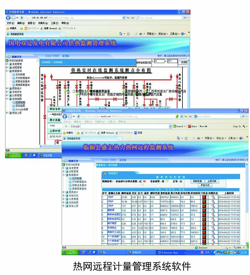 一、系統(tǒng)簡介 熱網(wǎng)遠程計量管理系統(tǒng)實現(xiàn)用戶供氣供熱信息的實時準確監(jiān)控,為供熱廠家平衡熱網(wǎng)運行狀態(tài)提供了快速真實的現(xiàn)場數(shù)據(jù)。系統(tǒng)為供熱方提供了現(xiàn)代化的計量和收費管理,幫助用戶快速發(fā)現(xiàn)熱網(wǎng)運行漏洞,對于用戶盜熱行為實現(xiàn)快速聲光報警并且短信通知相關人員。 二、系統(tǒng)組成 v 監(jiān)控中心:中心服務器、外網(wǎng)固定IP、熱網(wǎng)管理系統(tǒng)軟件; v 通信網(wǎng)絡: 基于移GPRS或電信CDMA網(wǎng)絡平臺; v 測控終端:IC卡控制終端、DTU模塊; v 計量儀表:積算儀、流量計、壓力變送器、溫度變送器、電動閥門。
